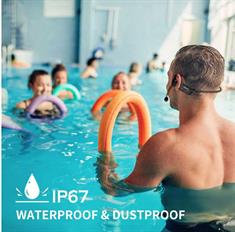Dette vandtætte headset er ideelt til svømmeinstruktører, fitnesscentre, spinning, udendørs præstationer.