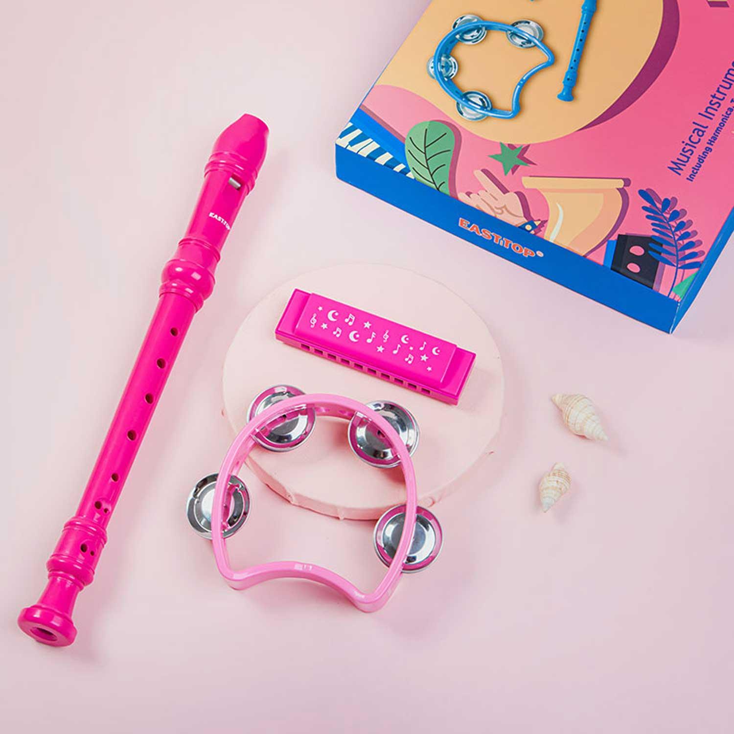 Mundharmonika, blokfløjte og tambourin sæt in pink