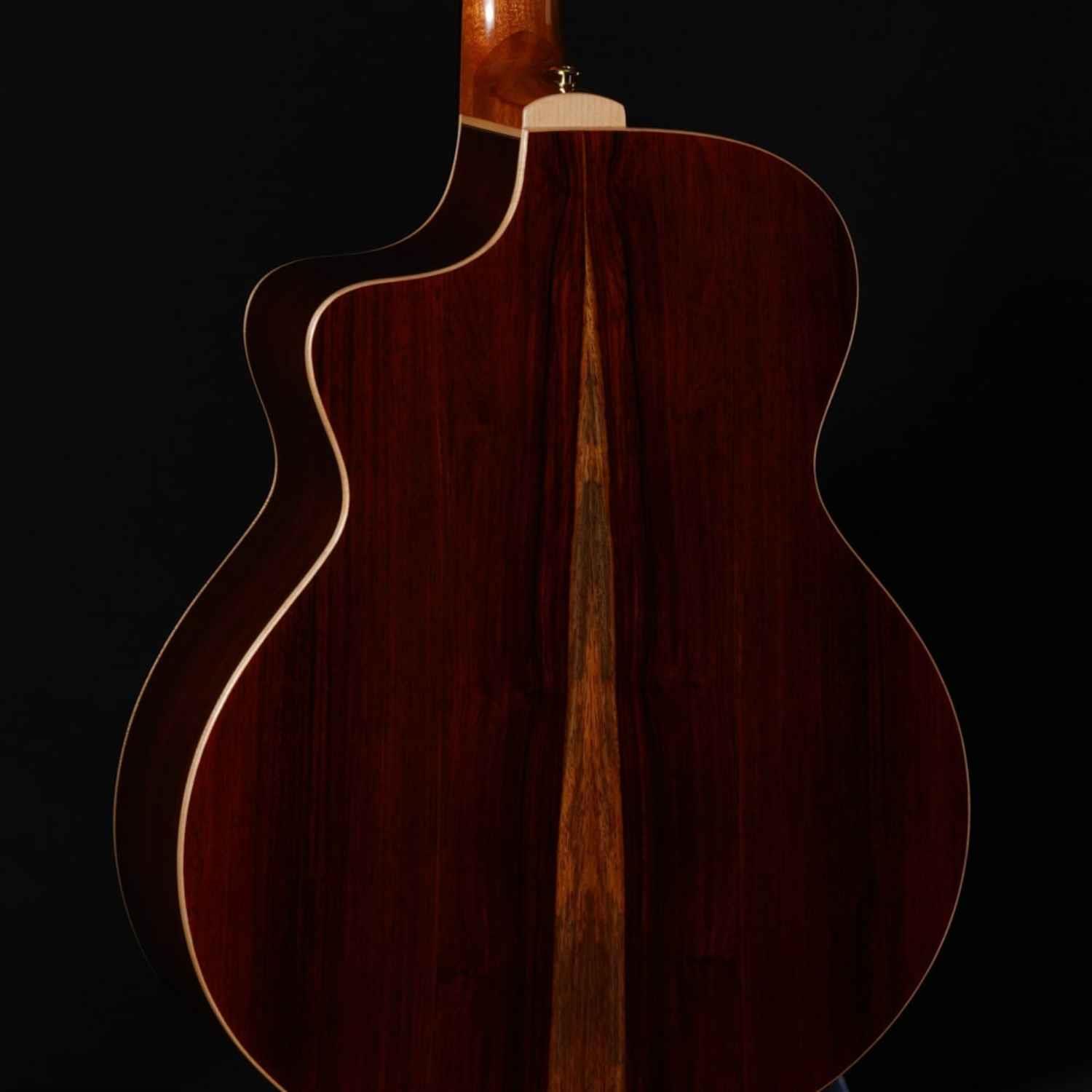 Denne jumbo-model er skabt til dig, der vil have stor lyd og flot respons. Den massive gran-top sikrer en levende og nuanceret klang, mens cocobolo-kroppen giver varme og dybde. Cutaway-designet gør den alsidig – perfekt til både akkorder og solo.