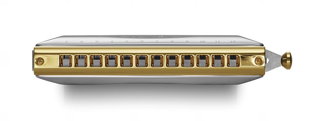 Denne model er 12-hullers, har 48 toner, slide-actionen er kort, og mundstykket er firkantet.